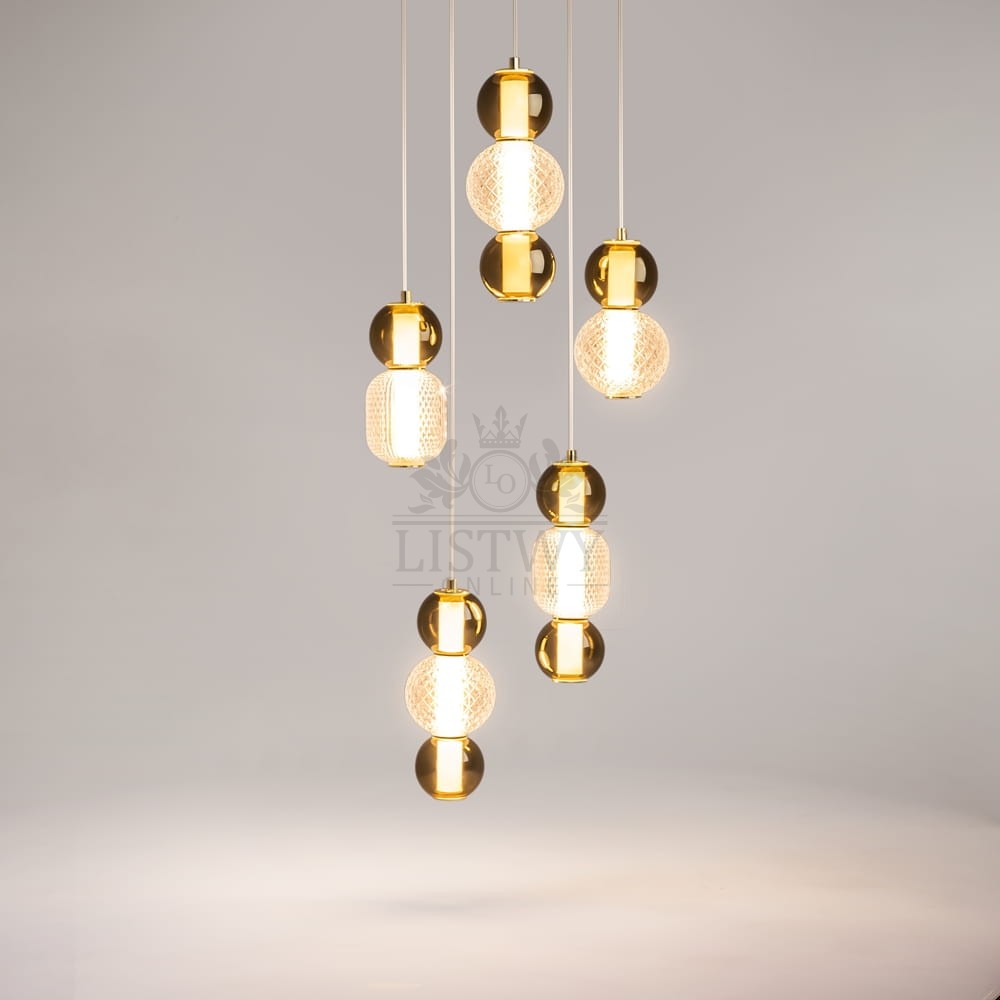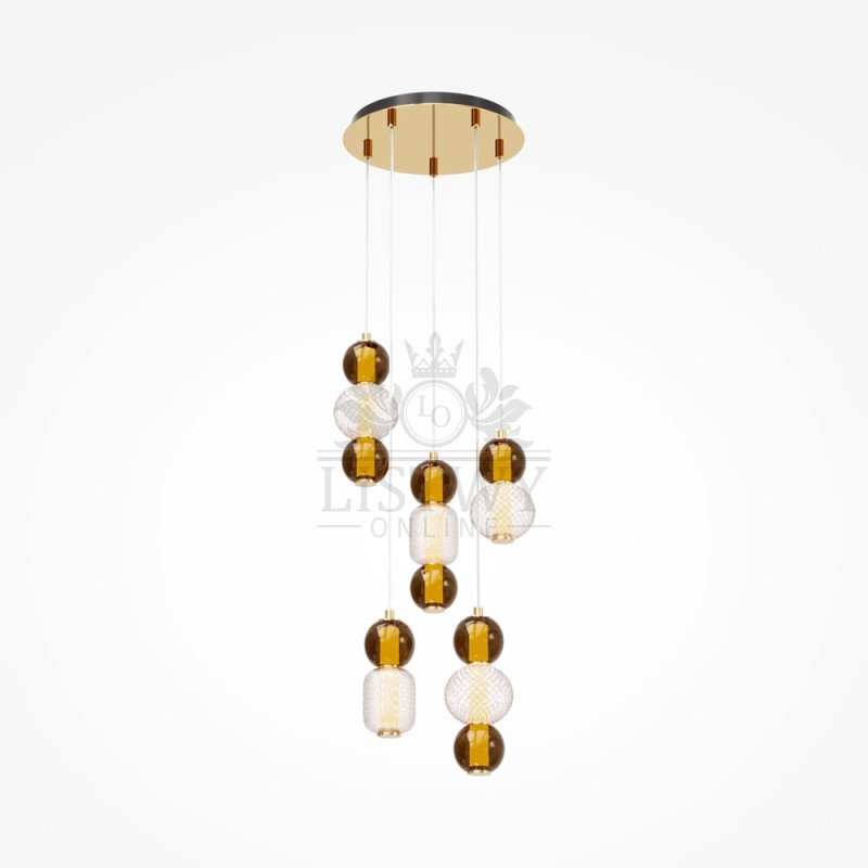 Lampa wisząca Drop MOD273PL-L80G3K to designerski akcent, który łączy w sobie elegancję i funkcjonalność. Metalowa konstrukcja w kolorze złotym współgra z kloszami ze szkła w odcieniach dymnym i bursztynowym, tworząc ciepły, przyjemny klimat w pomieszczeniu. Zintegrowane źródło LED o mocy 80 W generuje strumień świetlny ok. 9300 lm przy barwie światła 3000 K, co gwarantuje jasne i komfortowe oświetlenie wnętrza.