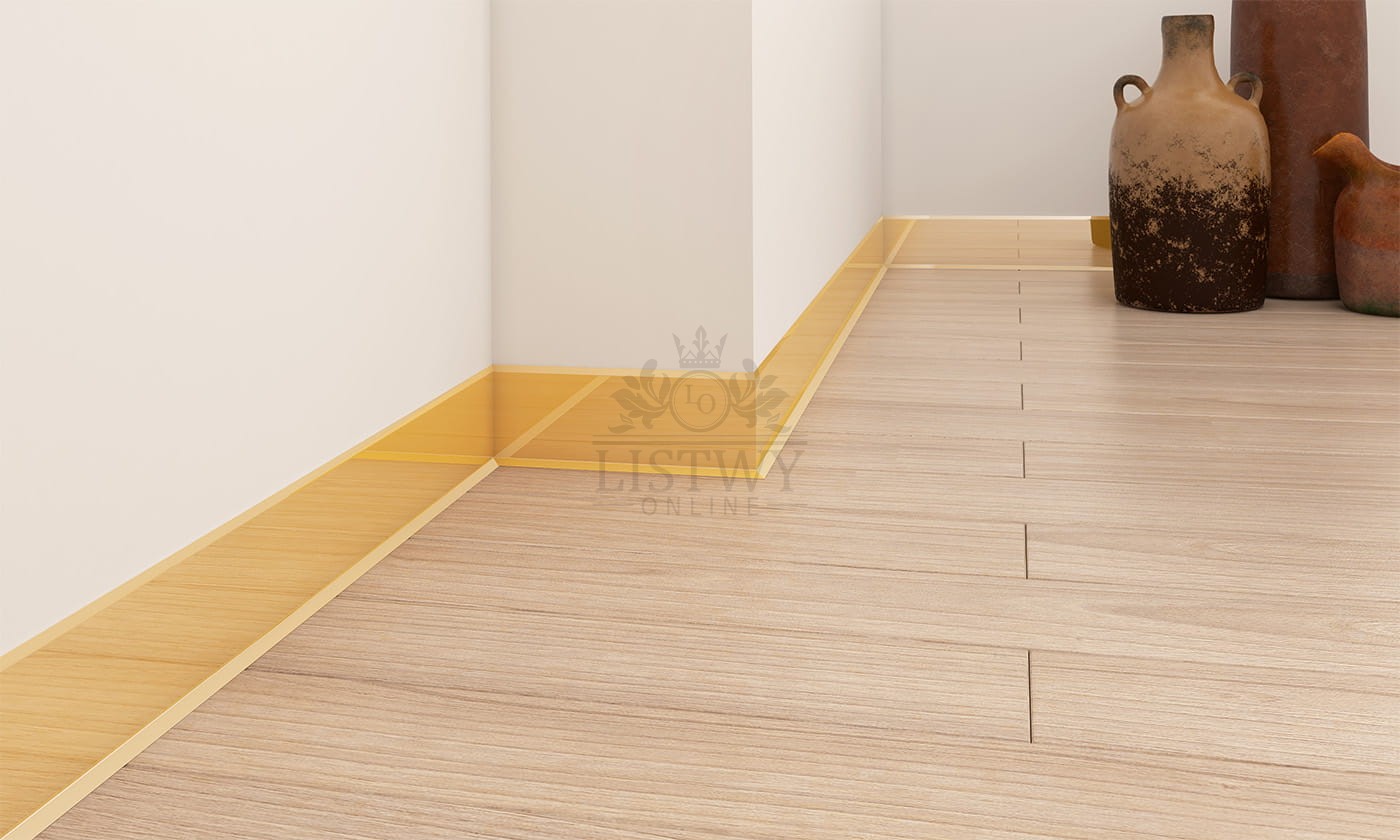 Listwa STL złoty połysk świetnie komponuje się z wnętrzami w stylu glamour, nowoczesnym, klasycznym oraz art deco, wnosząc do przestrzeni nutę luksusu i prestiżu. Dzięki gładkiej i lśniącej powierzchni odbijającej światło, listwa doskonale eksponuje detale wykończenia wnętrza, dodając mu wyjątkowego charakteru.