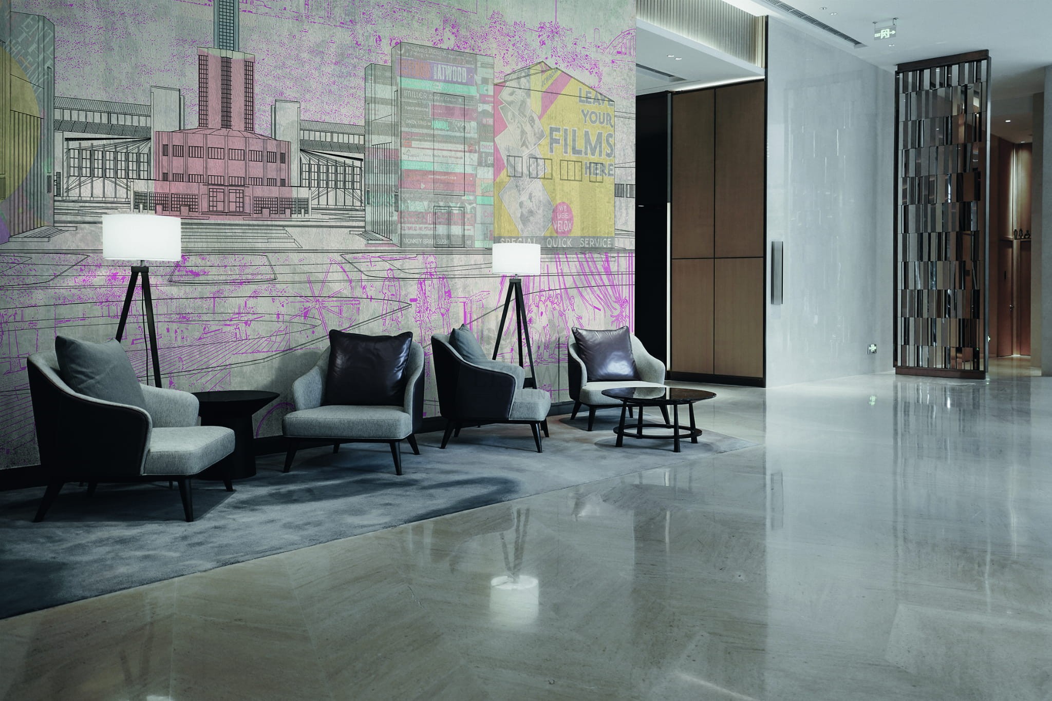 Mural został wykonany w technologii druku cyfrowego na podkładzie z tkaniny ( Pure Linen), co przekłada się na łatwy montaż bez szpachlowania i gładkie przyleganie do ściany. Powierzchnia jest delikatnie fakturowana, gotowa do montażu, odporna na działanie światła i bez problemu można ją usunąć “na sucho”.