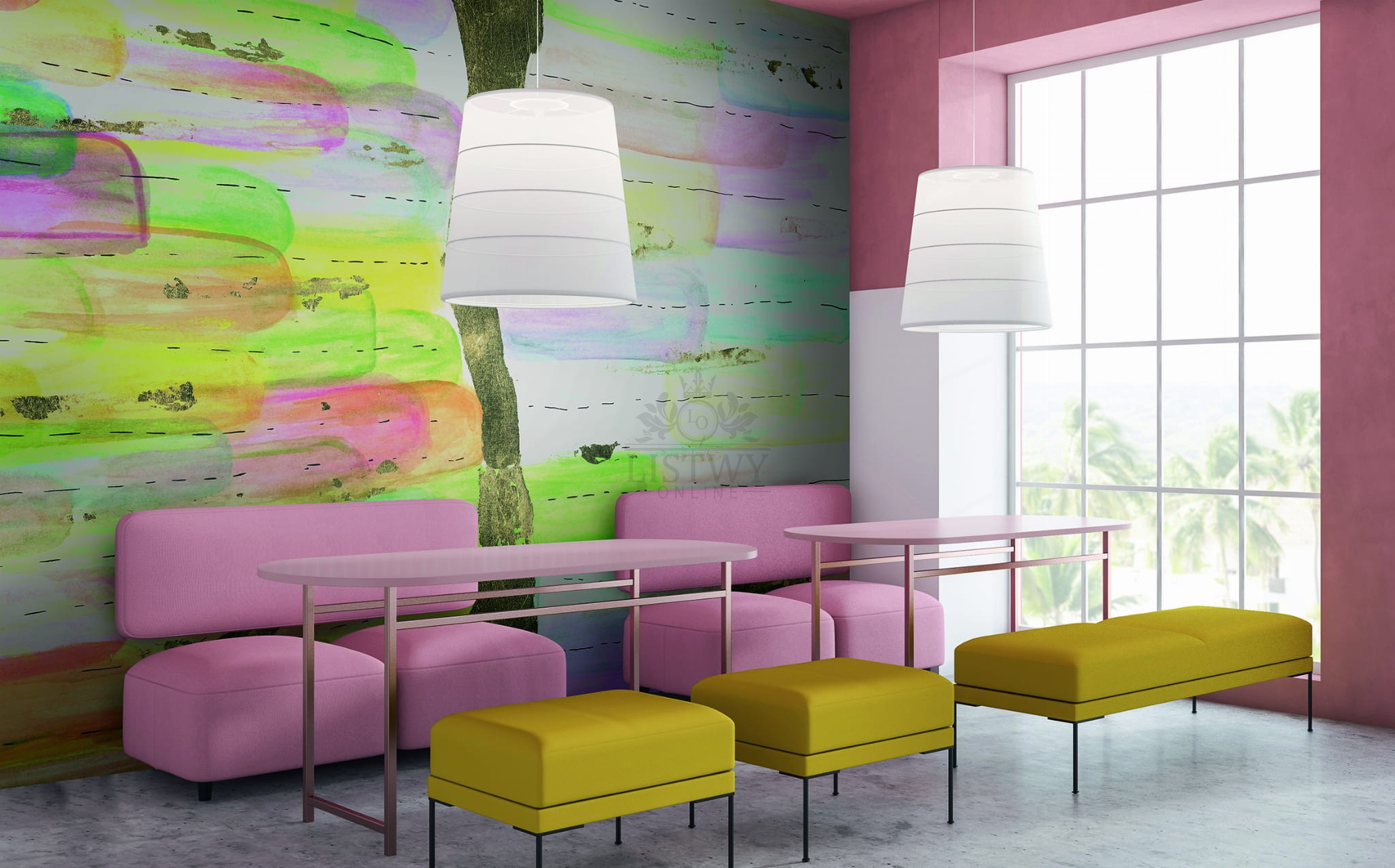 - Styl: współczesny, nowoczesny — mural nada wnętrzu charakteru, stanowiąc centralny punkt aranżacji.