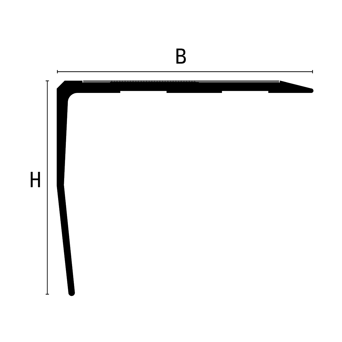 Profil schodowy stairtec SA Anodowany srebrny łączy wytrzymałość i estetykę anodowanego aluminium z wysokim poziomem bezpieczeństwa dzięki czarnej listwie antypoślizgowej z karborundu. Taśma jest montowana w specjalnej obudowie na górnej stronie profilu, jest nakładana po zakończeniu instalacji.