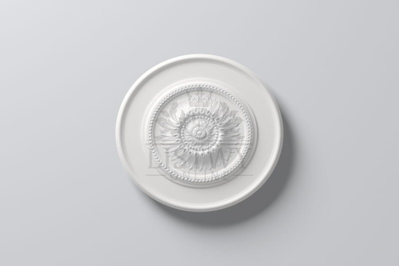 Rozeta R10 Arstyl to dekor o ciekawym i ponadczasowym ornamencie, który pomoże w ciekawy sposób ozdobić ścianę lub sufit, z pewnością znajdzie zastosowanie w wielu aranżacjach. Produkt wykonany został z wysokiej jakości poliuretanu, nie posiada w swoim składzie substancji toksycznych. Dzięki zastosowaniu pochodnych polimerów w różnych gęstościach element jest odporny na uderzenia oraz wilgoć co zapobiega powstawaniu grzyba oraz pleśni. R8 pozwoli nam na stylowe połączenie oświetlenia i sufitu , a dodatkowo można pomalować ją na dowolnie wybrany kolor przez użytkownika za pomocą farb bez dodatku rozpuszczalników.
