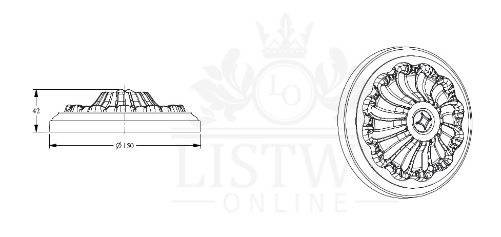 Rozeta R10 została wykonana z wysokiej jakości lekkiego materiału poliuretan . Można ją przemalować na dowolny kolor, używając farb niezawierających rozpuszczalników. Doskonale aranżuje puste, zwyczajne ściany, tworząc na nich przepiękne ozdoby. Odporny na uszkodzenia oraz wilgoć.