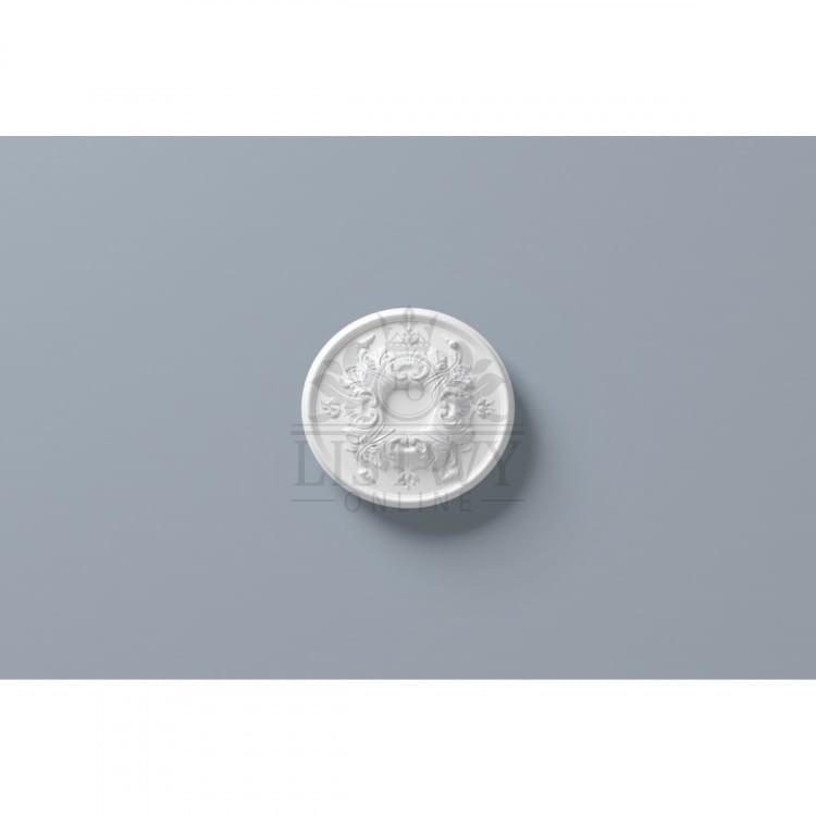 Rozeta R1520 Arstyl o bardzo gustowny komponent dekoracyjny wnętrz o urozmaiconym i pokaźnym ornamencie, z pewnością doda w pomieszceniu kunsztu i elegancji a dodatkowo można dzięki niemu zakryć niedoskonałości powstałe na ścianie.