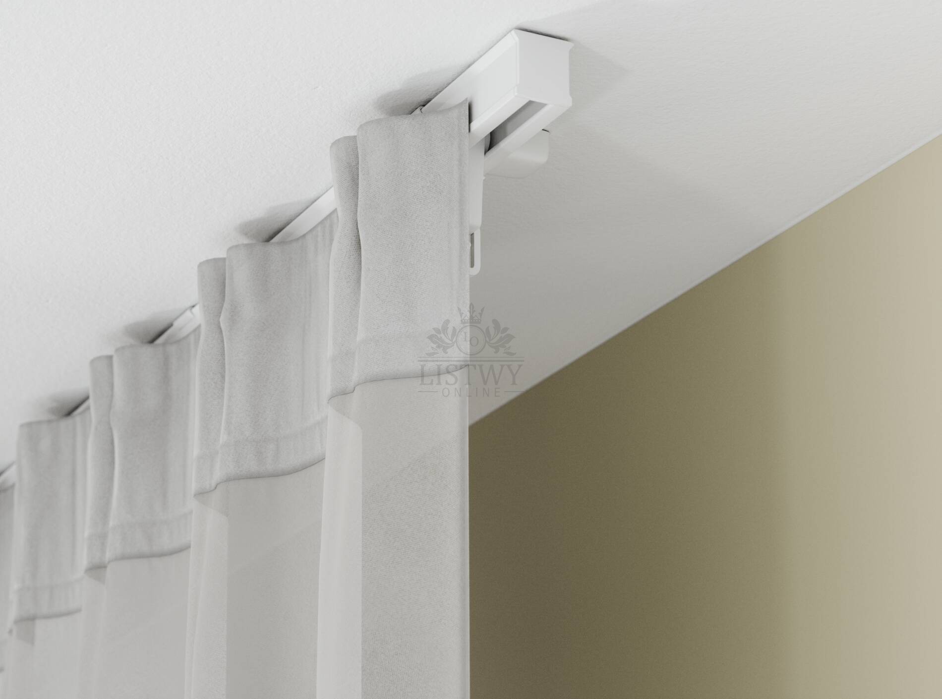 Profil XS został zaprojektowany z myślą o zawieszaniu wyjątkowo masywnych zasłon — wytrzymuje nawet do 15 kg na metr karnisza.