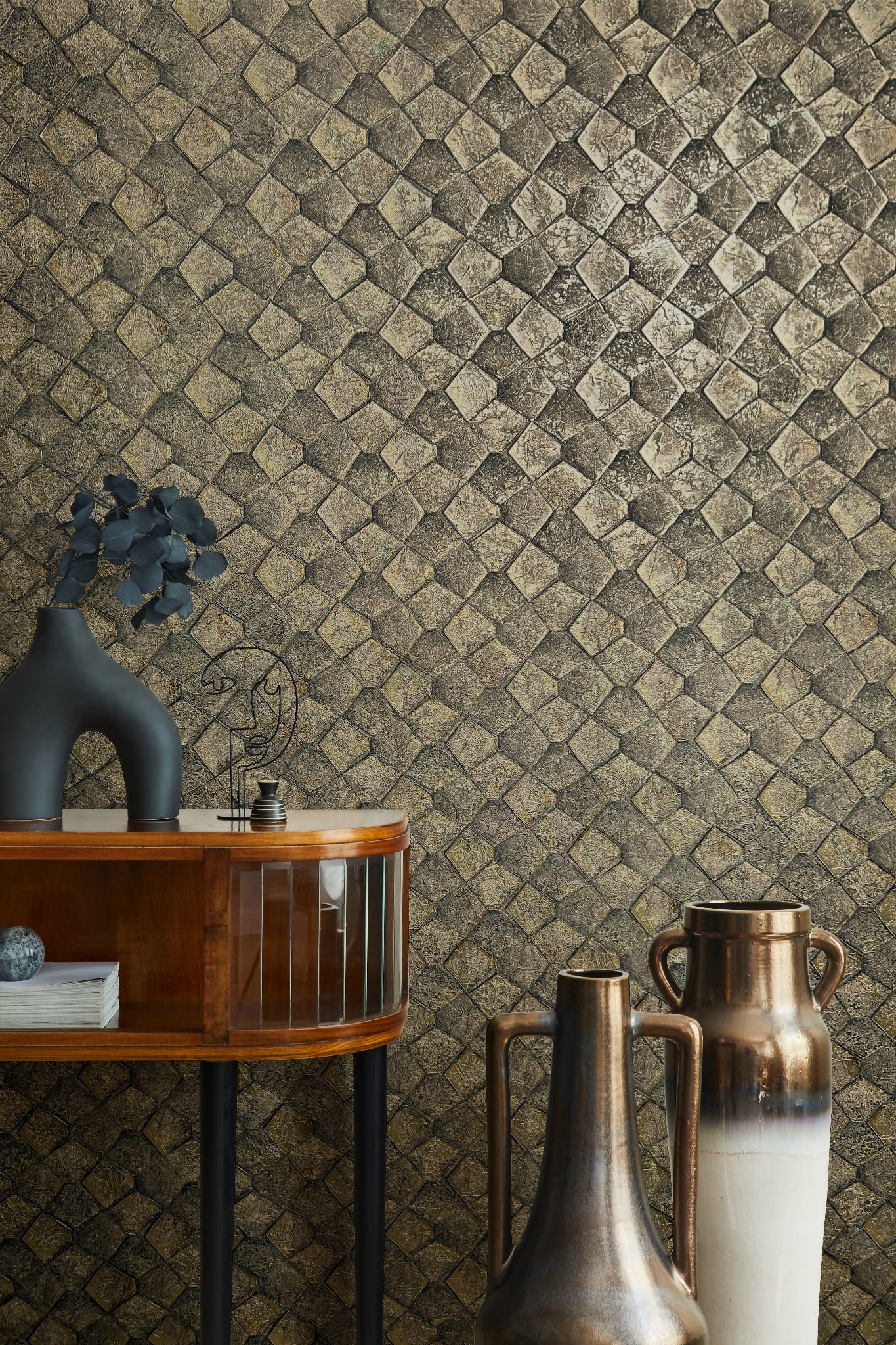 Tapeta Eclectic Felix Diener 34909 to elegancka i efektowna dekoracja z luksusowej kolekcji Eclectic projektowanej przez Felixa Dienera dla marki Marburg. Wzór charakteryzuje się subtelną strukturą o perłowym, metalicznym wykończeniu, które delikatnie odbija światło i nadaje głębi ścianie, tworząc wyjątkowy efekt wizualny. Ten model doskonale sprawdzi się zarówno jako centralny element aranżacji, jak i harmonijne tło dla nowoczesnych wnętrz.