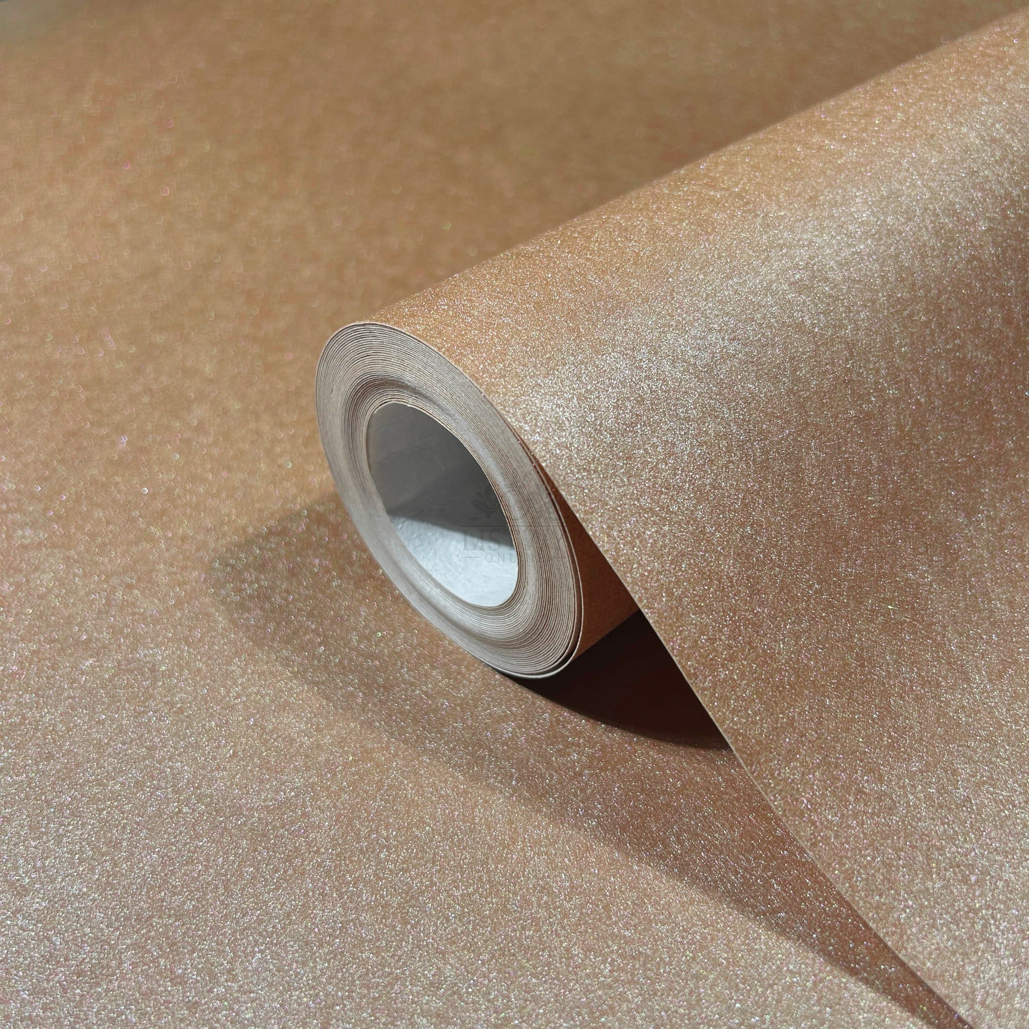 Tapeta ma jednolitą, delikatnie strukturalną powierzchnię, przypominającą subtelne kryształki lub drobny piasek, które zostały równomiernie naniesione na podłoże. Dzięki temu ściany zyskują głębię, lekki połysk i ciekawy efekt świetlny, nawet bez wyraźnego wzoru.